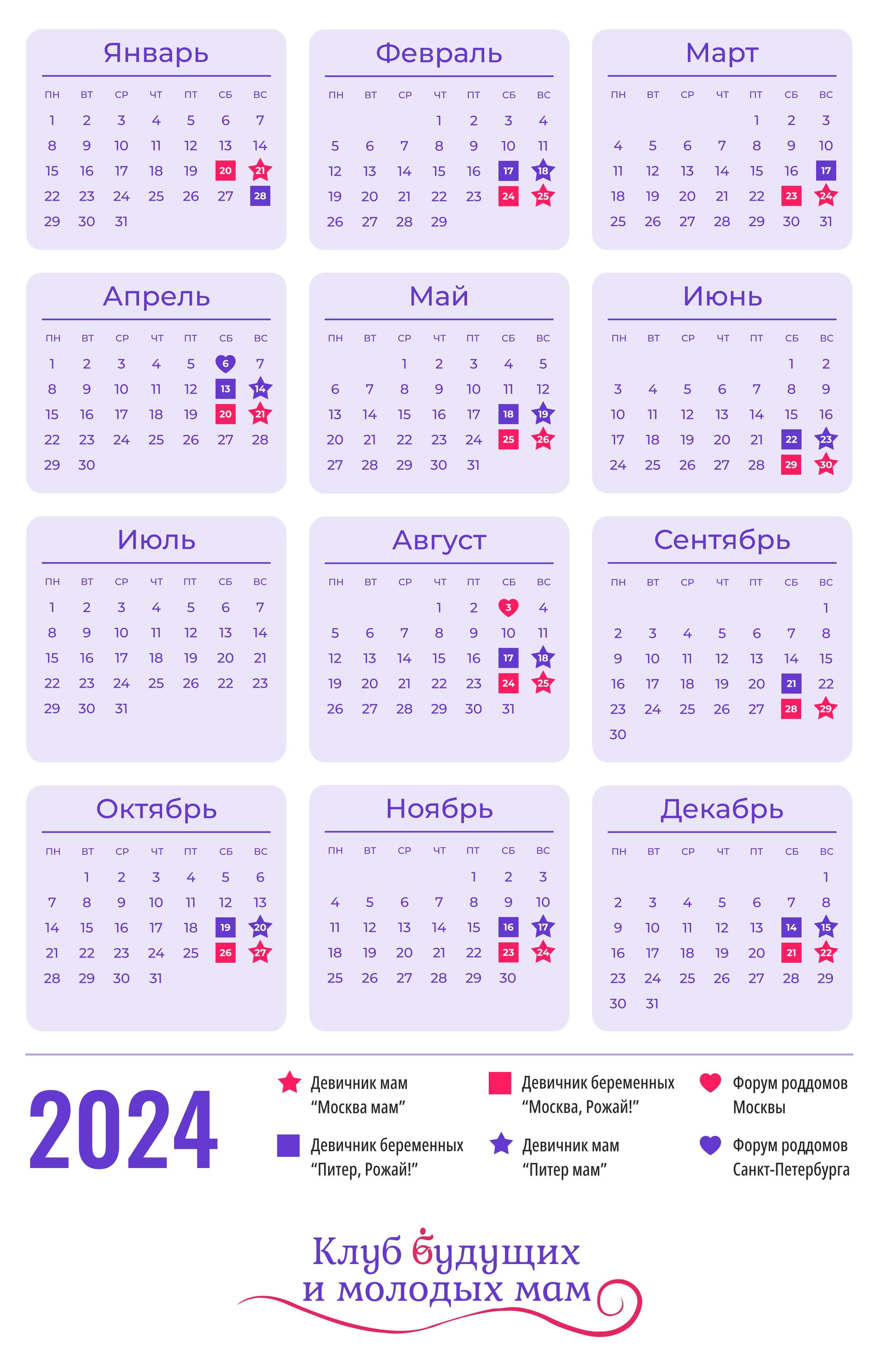 Клуб беременных Санкт-Петербурга величественно открыл новый сезон | | | | 20 и 21 января в пятизвёздочном отеле прошли грандиозные встречи беременных и молодых мам Москвы «Москва мам» и «Москва, рожай». | | | Фотоотчёт "Москва, рожай!" | 20 января, гостиница Золотое кольцо 5* | | | Фотоотчёт "Москва мам" | 21 января, гостиница Золотое кольцо 5* | | | Встречи прошли на самом высоком уровне и подарили море положительных эмоций | | | | Онлайн аудитория мероприятия | | | | | Сайт | https://devi4nik.ru/moskva_rogay | | | Инстаграм | https://instagram.com/devi4nik.club | | | | Лекторий | Участницы прослушали лекционную программу, охватывающую основные аспекты будущего материнства, посвящённые процессу беременности, подготовке к рождению ребенка, здоровью мамы и ребенка и уходу за малышом до 1 года. Благодаря новым партнёрам, прекрасно влившихся в Клуб, пул лекций стал ещё более разнообразным и интересным. | | | | Мини-выставка | Во время всего мероприятия работала выставочная зона, на которой можно было посмотреть и протестировать товары для самых маленьких и подробнее узнать о представляемых услугах. Партнеры мероприятия предоставили свою продукцию на своих стендах . | | | | Консультации врачей в отдельном кабинете | Генеральный партнёр Клуба беременных – сеть медицинских центров «СМ-Клиника» организовал работу кабинетов психолога, гастроэнтеролога и педиатра. | | | | Поддержка власти | Открывая лекционную программу, перед собравшимися выступил депутат Мосгордумы Магомет Исаевич Яндиев. Его яркое выступление было посвящено различным мерам социальной поддержки, которые власти Москвы оказывают беременным и молодым семьям столицы. Кроме того, именно на этой встрече парламентарий поделился своей инициативой объявить мам главными людьми страны, вокруг которых должна выстраиваться вся политическая, социальная и экономическая политика государства. Эту концепцию он описал в политическом манифесте про маму. | | | | Фотозона | На фоне пресс-вола гости делали памятные фото | | | | Костюмированное шоу участниц | Определяя тематику мероприятий, мы решили продолжить череду новогодних праздников. Расширяя знакомства с различными культурами, было принято решение отпраздновать Новый год по китайскому календарю. | | | | | Беременные москвички и молодые мамы окрасили зал в зелёные цвета в честь года зелёного дракона. | | | | Музыкальная шоу программа | Кульминацией интерактивной программы стал завораживающий танец символа наступившего года, исполненный под национальную китайскую музыку и под бурные аплодисменты очарованной публики. | | | | Подарки и призы | Все посетительницы мероприятия получили пакет участницы в конце лектория с продукцией от партнеров и приняли участие в розыгрыше ценных призов. | | | | Общий призовой фонд мероприятия | Главным спонсором призового фонда стала компания «Бапа», предоставившая победительницам ценные призы в виде наборов косметики на сумму в 35 000 рублей. Ни одна участница не покинула мероприятия без солидного призового пакета. | | | | | Зарегистрировались: | 939 беременных и 623 мам в декрете | | | Посетили мероприятие: | 438 будущих мам и 213 состоявшихся мам | | | | Рады нашему сотрудничеству! | | | Подписывайтесь на новости компании в телеграм канале | | | Увидеть все наши проекты можно на сайте | | | Календарь активностей 2024 | | | Как проходят наши другие мероприятия вы можете посмотреть на нашем канале 