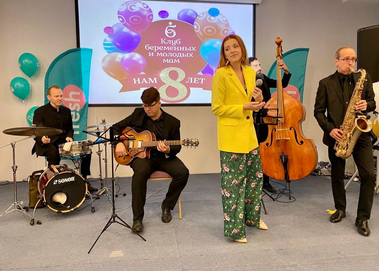 Тема мероприятия — День Рождения Клуба беременных в стиле Jazz. Большая часть посетительниц откликнулась на заявленный организатором дресс-код. На площадке царило настроение праздника, а атмосферу поддерживал блестящий джазовый коллектив, выступающий во время перерывов.