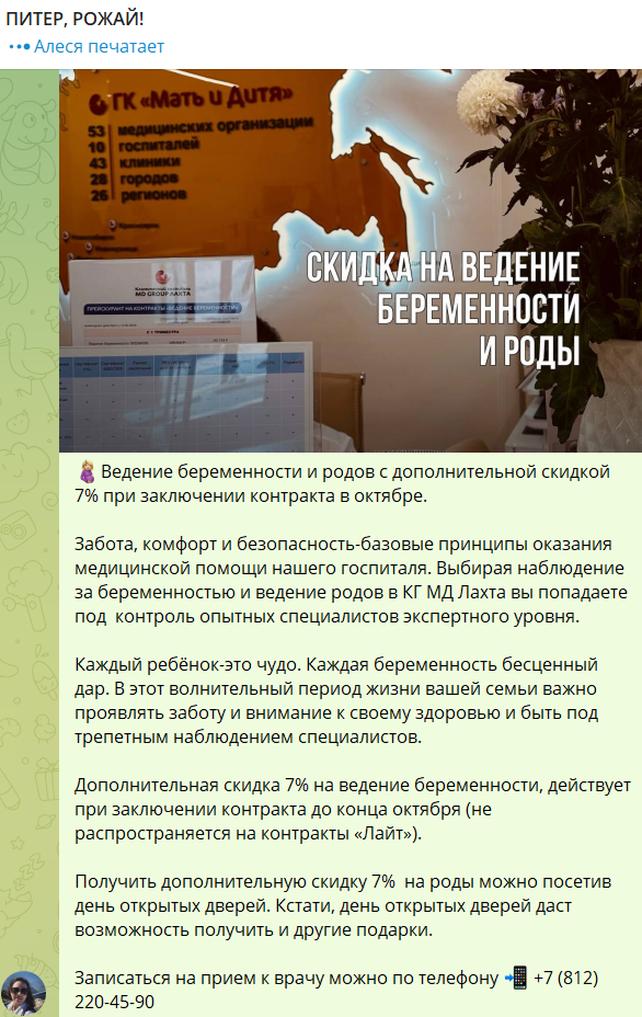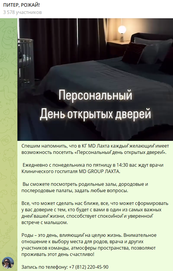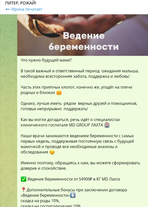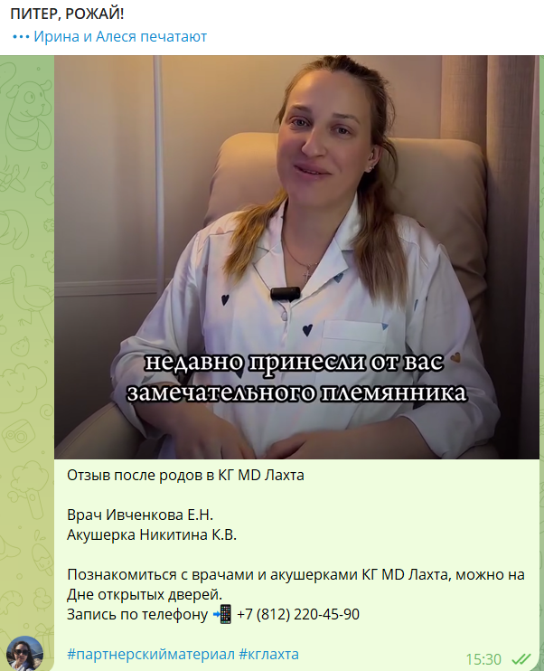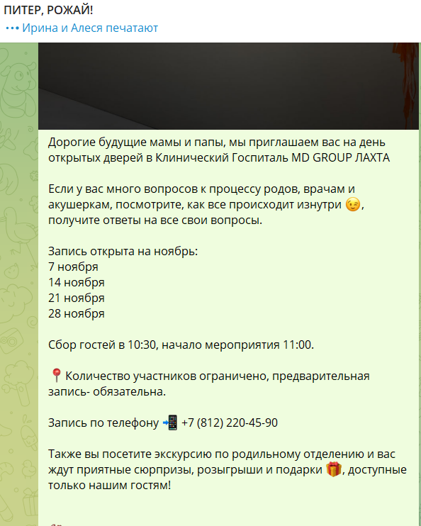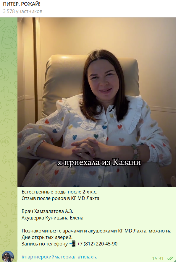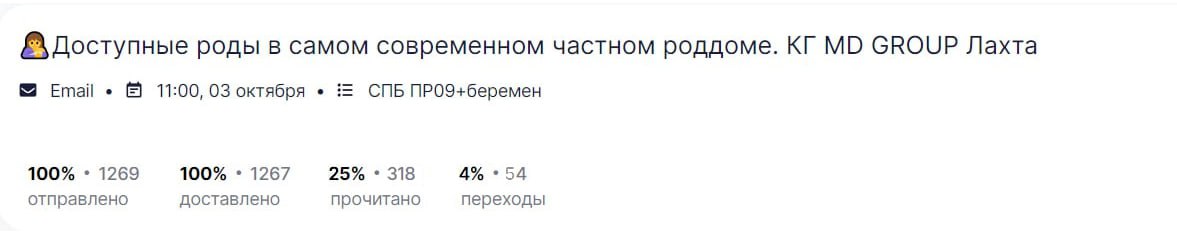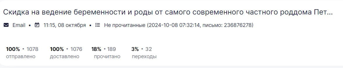 Представляем вашему вниманию отчет об участии вашей компании в мероприятии «Питер, Рожай!» | | | | Место проведения: Санкт-Петербург, гостиница «Октябрьская» 4* Дата проведения: 19 октября 2024 г. Время проведения мероприятия: с 10:00 до 15:00 и с 16:00 до 21:00 (две сессии) Полная посадка. | | | | Статистика посещения Питер, Рожай! | | | | Аудитория исключительно женщины. P. S. В рамках договора по итогам мероприятия организаторы осуществляют email-рассылку рекламы компании по базе зарегистрированных участниц. | | | | Лекции спикеров | Ваша компания приняла активное участие в лекционной части мероприятия, чем привлекла 100%-е внимание аудитории. Организаторы обеспечили на площадке тишину и сконцентрировали внимание всех зрителей на теме лекции. Продолжительность выступлений "Питер, Рожай!": 20 минут в первой сесиии, 20 минут во второй сессии. | | | | Cтенд компании | Во время мероприятия осуществлялась коммуникация с посетителями на стенде компании. Общее количество времени коммуникации с аудиторией составило: 2 часа 20 минут (4 перерыва по 20 минут + время до начала и после окончания мероприятия). | | | | Сотрудники компании, осуществляющие работу на стенде | | | | Продвижение бренда в онлайн формате | | | | E-mail рассылки по базе зарегистрированных на мероприятие | | | | Общая информация о мероприятии | | | | С напутственным словом и поздравлением президента Клуба на мероприятии выступил председатель постоянной комиссии по здравоохранению и социальной политике законодательного собрания Санкт-Петербурга Александр Николаевич Ржаненков. Он рассказал о мерах поддержки молодых семей, которые предоставляют городские власти. | | | | В мероприятии принимали участие 17 крупных федеральных компаний России. Генеральным партнером наших мероприятий выступает компания Ozon fresh. | | | | Тема мероприятия — Девичник в цыганском стиле. Большая часть посетительниц откликнулась на заявленный организатором дресс-код. На площадке царило настроение праздника, а атмосферу поддерживал зажигательный цыганский ансамбль, выступающий во время перерывов. | | | | На наших девичниках был разыгран крупнейший призовой фонд, предоставленный многочисленными партнёрами Клуба беременных и молодых мам. | | | | Каждой участнице на выходе был вручён индивидуальный подарок. | | | | Рады нашему сотрудничеству! | Благодарим компанию за прекрасную работу на нашем мероприятии. | | | | Календарь активностей 2024 | | | |