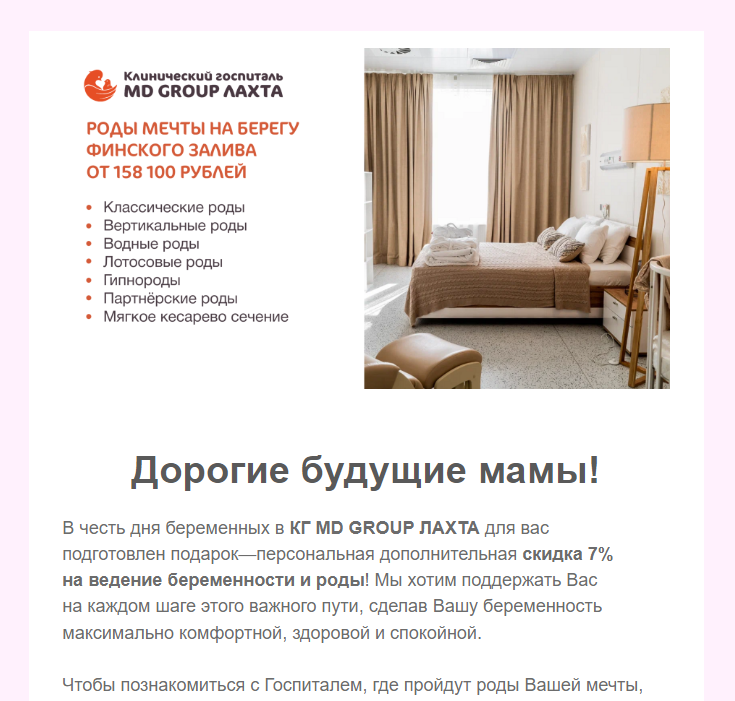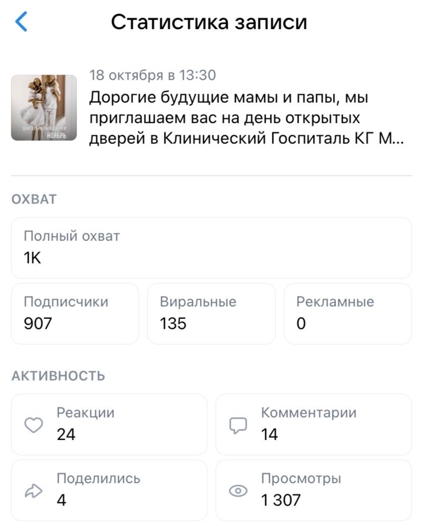 Представляем вашему вниманию отчет об участии вашей компании в мероприятии «Питер, Рожай!» | | | | Место проведения: Санкт-Петербург, гостиница «Октябрьская» 4* Дата проведения: 16 ноября 2024 г. Время проведения мероприятия: с 10:00 до 15:00 и с 16:00 до 21:00 (две сессии) Полная посадка. | | | | Статистика посещения Питер, Рожай | | | | Аудитория исключительно женщины. P. S. В рамках договора по итогам мероприятия организаторы осуществляют email-рассылку рекламы компании по базе зарегистрированных участниц. | | | | Лекции спикеров | Ваша компания приняла активное участие в лекционной части мероприятия, чем привлекла 100%-е внимание аудитории. Организаторы обеспечили на площадке тишину и сконцентрировали внимание всех зрителей на теме лекции. Продолжительность выступлений "Питер, Рожай!": 20 минут в первой сесиии, 20 минут во второй сессии. | | | | Cтенд компании | Во время мероприятия осуществлялась коммуникация с посетителями на стенде компании. Общее количество времени коммуникации с аудиторией составило: 2 часа 20 минут (4 перерыва по 20 минут + время до начала и после окончания мероприятия). | | | | Сотрудники компании, осуществляющие работу на стенде | | | | Продвижение бренда в онлайн формате | | | | E-mail рассылки по базе зарегистрированных на мероприятие | | | | Общая информация о мероприятии | | | | С напутственным словом на мероприятии выступил председатель постоянной комиссии по здравоохранению и социальной политике законодательного собрания Санкт-Петербурга Александр Николаевич Ржаненков. Он рассказал о мерах поддержки молодых семей, которые предоставляют городские власти. | | | | В мероприятии принимали участие 17 крупных федеральных компаний России. Генеральным партнером наших мероприятий выступает компания Ozon fresh. | | | | Тема мероприятия — Девичник в мексиканском стиле. Большая часть посетительниц откликнулась на заявленный организатором дресс-код. На площадке царило настроение праздника, а атмосферу поддерживал жгучий латиноамериканский бэнд Chili Sanchos, выступающий во время перерывов. | | | | На наших девичниках был разыгран крупнейший призовой фонд, предоставленный многочисленными партнёрами Клуба беременных и молодых мам. | | | | Каждой участнице на выходе был вручён индивидуальный подарок. | | | | Рады нашему сотрудничеству! | Благодарим компанию за прекрасную работу на нашем мероприятии. | | | | Календарь активностей 2024 | | | |