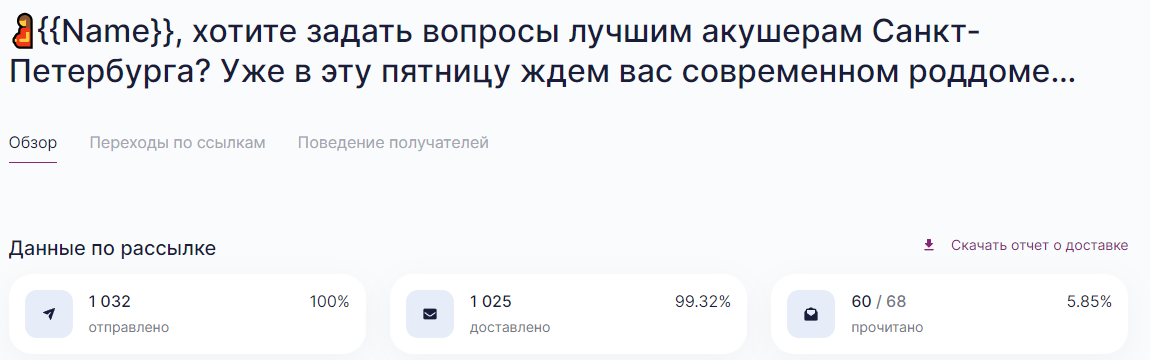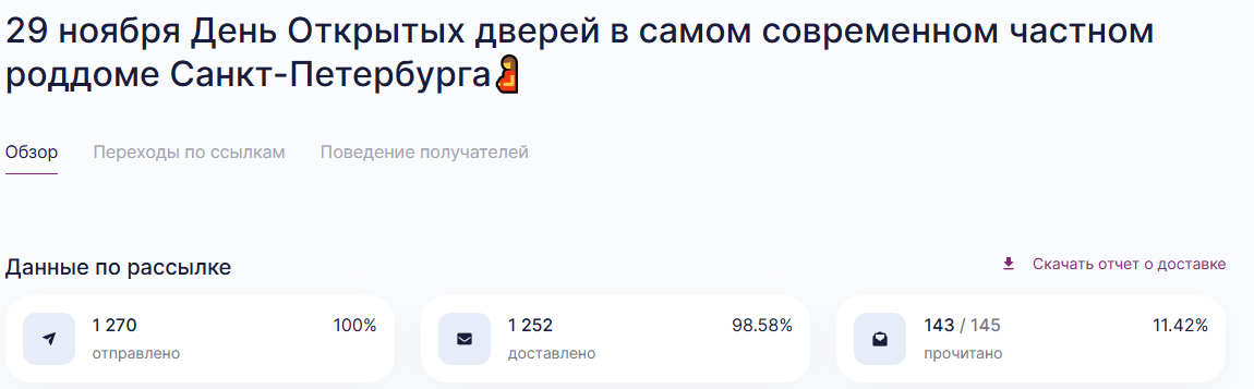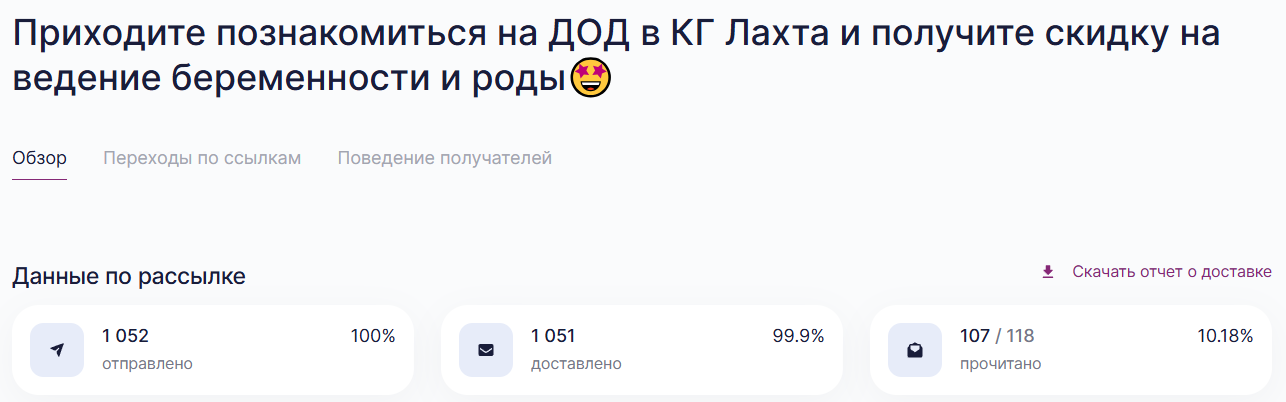 В четверг роддом Лахта провел свой ДОД, а уже в пятницу мы собрали нашу аудиторию. Несмотря на сложный предвыходной день, желающих посетить мероприятие составило 80 человек. Но на встречу пришло 40 беременных. Конверсия составила стандартные 50 %. С помощью колл-центра в настоящий момент мы обрабатываем заявки тех, кто «не дошёл» до мероприятия с целью направить эту аудиторию на следующий день открытых дверей. |