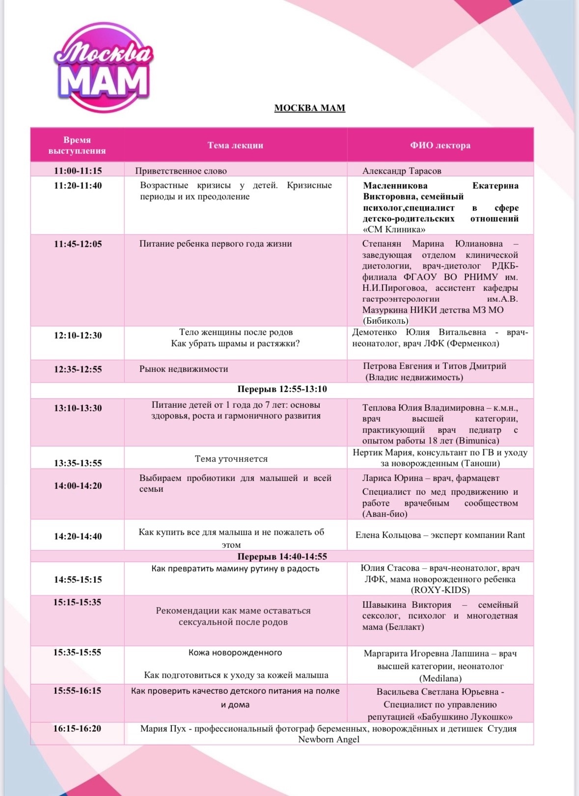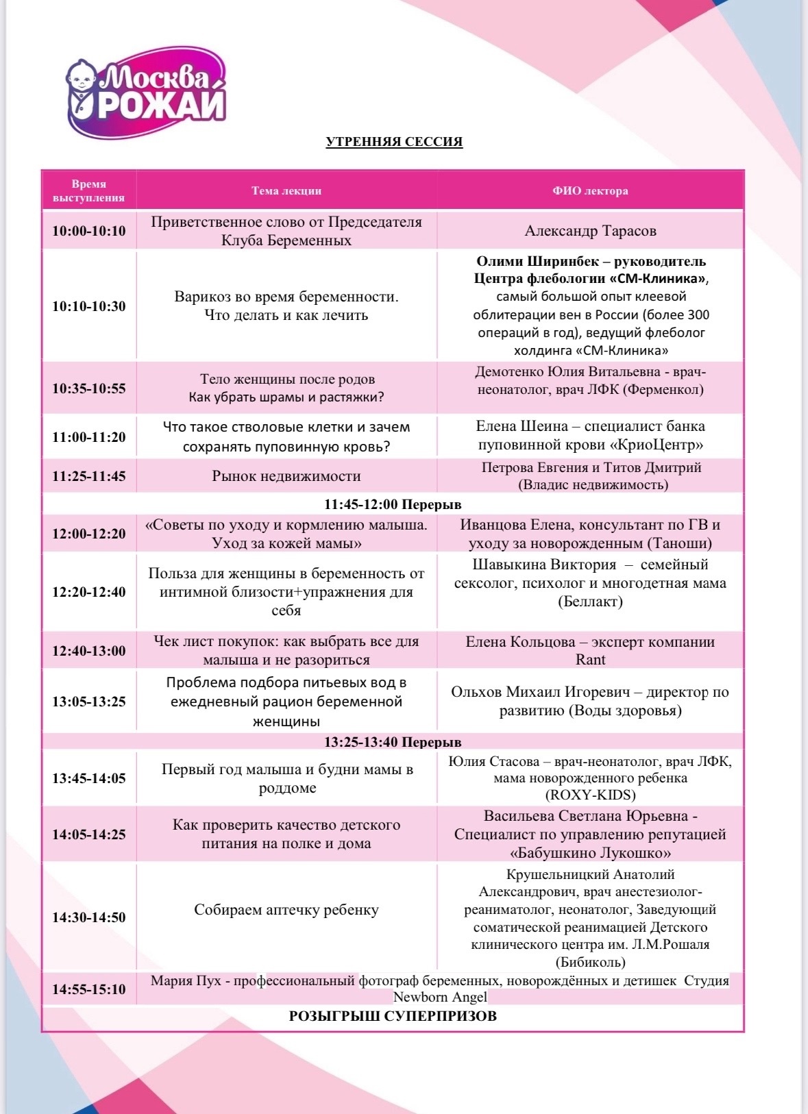 22 и 23 февраля в пятизвёздочном отеле «Золотое кольцо» в центре Москвы состоялись встречи «Москва, Рожай» и «Москва Мам». | | | Девичники посетили 643 девушки | | | Встречу «Москва мам» посетил важный и почетный гость, депутат государственной думы Татьяна Викторовна Буцкая - первый заместитель председателя комитета по защите семьи, вопросам материнства, отцовства и детства. | | | | Мини-выставка товаров и услуг | В мероприятии принимали участие 18 крупных федеральных компаний России. Во время всего мероприятия работала выставочная зона, на которой можно было посмотреть и протестировать товары для мам и малышей и подробнее узнать о представляемых услугах. Партнеры мероприятия предоставили свою продукцию на стендах мероприятия. | | | | Работа со СМИ – одно из важнейших направлений нашей деятельности. Каждое наше мероприятие освещается профильными изданиями. | | | | Фотозона | На фоне пресс-вола гости делали памятные фото | | | | Костюмированное шоу участниц | Наши прекрасные участницы и их мамы с большим воодушевлением участвовали в тематическом празднике "90-ые - связь поколений"! Они проявили творческий подход и с ностальгией вспоминали годы своего детства и молодости. | | | | Шоу программа | На площадке царило зажигательное настроение, а атмосферу поддерживал приглашенный DJ. | | | | Подарочный пакет участницы | Все посетительницы мероприятия получали пакет участницы в конце лектория с продукцией от партнера | | | | Общий призовой фонд мероприятия | На праздничных девичниках был разыгран крупнейший призовой фонд, предоставленный многочисленными партнёрами Клуба беременных и молодых мам. Столы ломятся от подарков: очевидно, что с пустыми руками с мероприятия не уйдёт ни одна мама. | | | | Рады нашему сотрудничеству! | | | | Подписывайтесь на новости компании в телеграм канале | | | | Увидеть все наши проекты можно на сайте | | | Календарь активностей 2025 | | | Как проходят наши другие мероприятия вы можете посмотреть на нашем канале в Яндекс Дзен | | | На все вопросы готовы ответить наши представители: | | | |