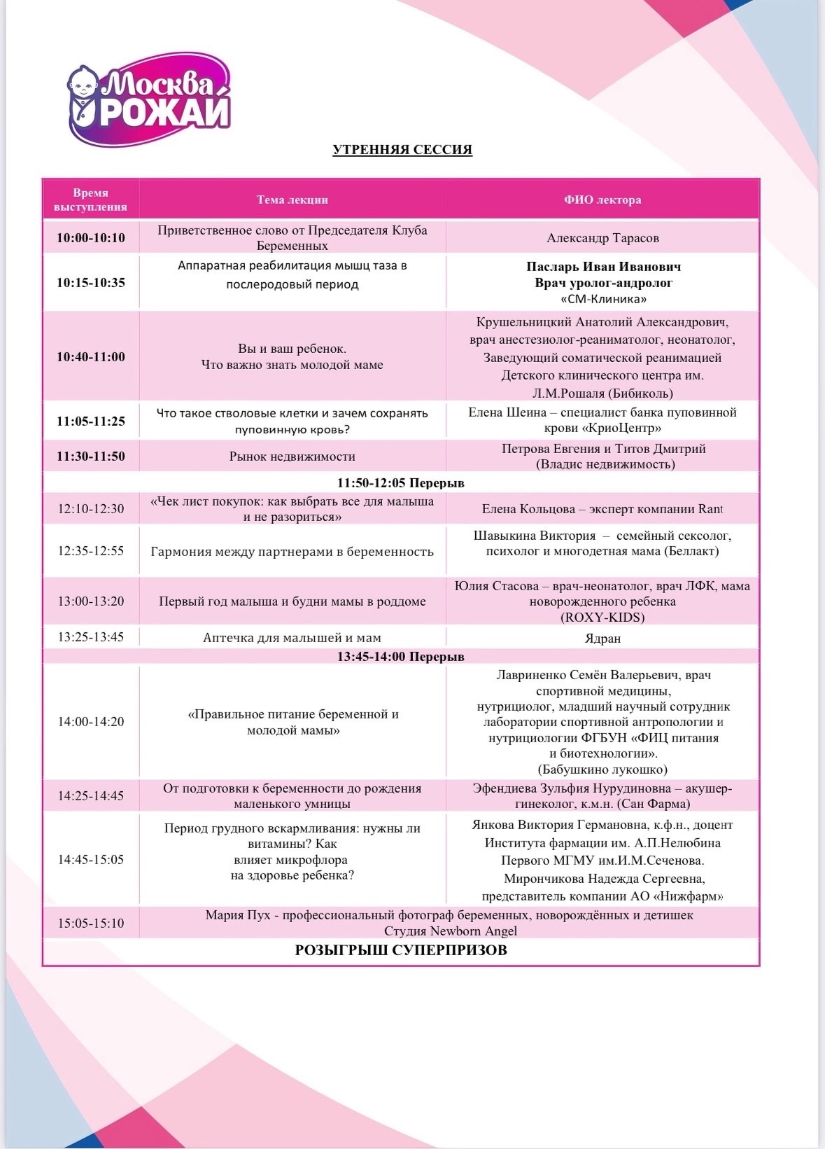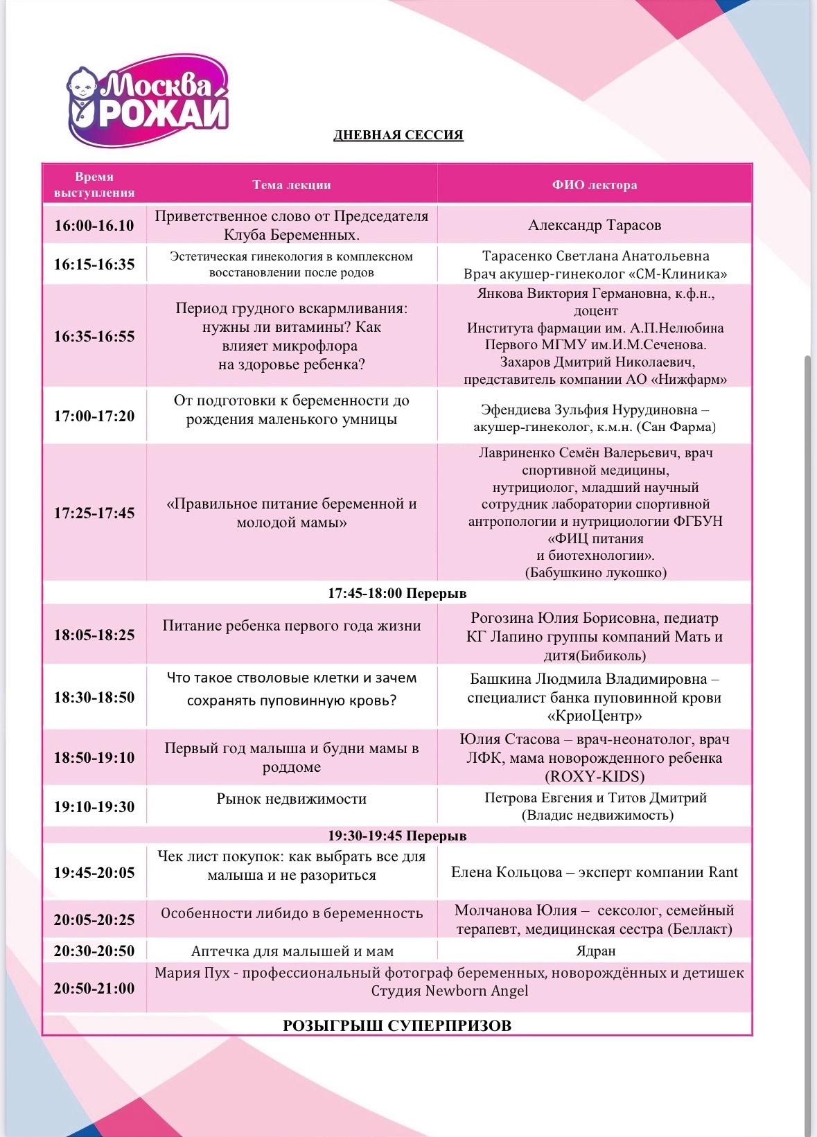 22 и 23 марта в пятизвёздочном отеле «Золотое кольцо» в центре Москвы состоялись встречи «Москва, Рожай» и «Москва Мам». | | | Девичники посетили 645 девушек | | | Мини-выставка товаров и услуг | В мероприятии принимали участие 18 крупных федеральных компаний России. Во время всего мероприятия работала выставочная зона, на которой можно было посмотреть и протестировать товары для мам и малышей и подробнее узнать о представляемых услугах. Партнеры мероприятия предоставили свою продукцию на стендах мероприятия. | | | | Фотозона | На фоне пресс-вола гости делали памятные фото | | | | Костюмированное шоу участниц | Наши прекрасные участницы с большим воодушевлением участвовали в тематическом празднике "Пижамная вечеринка"! Они проявили творческий подход и создали невероятно уютное и домашнее настроение. | | | | Шоу программа | На площадке царила атмосфера уюта, которую поддерживал приглашенный саксофонист. | | | | Подарочный пакет участницы | Все посетительницы мероприятия получали пакет участницы в конце лектория с продукцией от партнера | | | | Общий призовой фонд мероприятия | На праздничных девичниках был разыгран крупнейший призовой фонд, предоставленный многочисленными партнёрами Клуба беременных и молодых мам. Столы ломятся от подарков: очевидно, что с пустыми руками с мероприятия не уйдёт ни одна мама. | | | | Рады нашему сотрудничеству! | | | | Подписывайтесь на новости компании в телеграм канале | | | | Увидеть все наши проекты можно на сайте | | | Календарь активностей 2025 | | | Как проходят наши другие мероприятия вы можете посмотреть на нашем канале в Яндекс Дзен | | | На все вопросы готовы ответить наши представители: | | | |