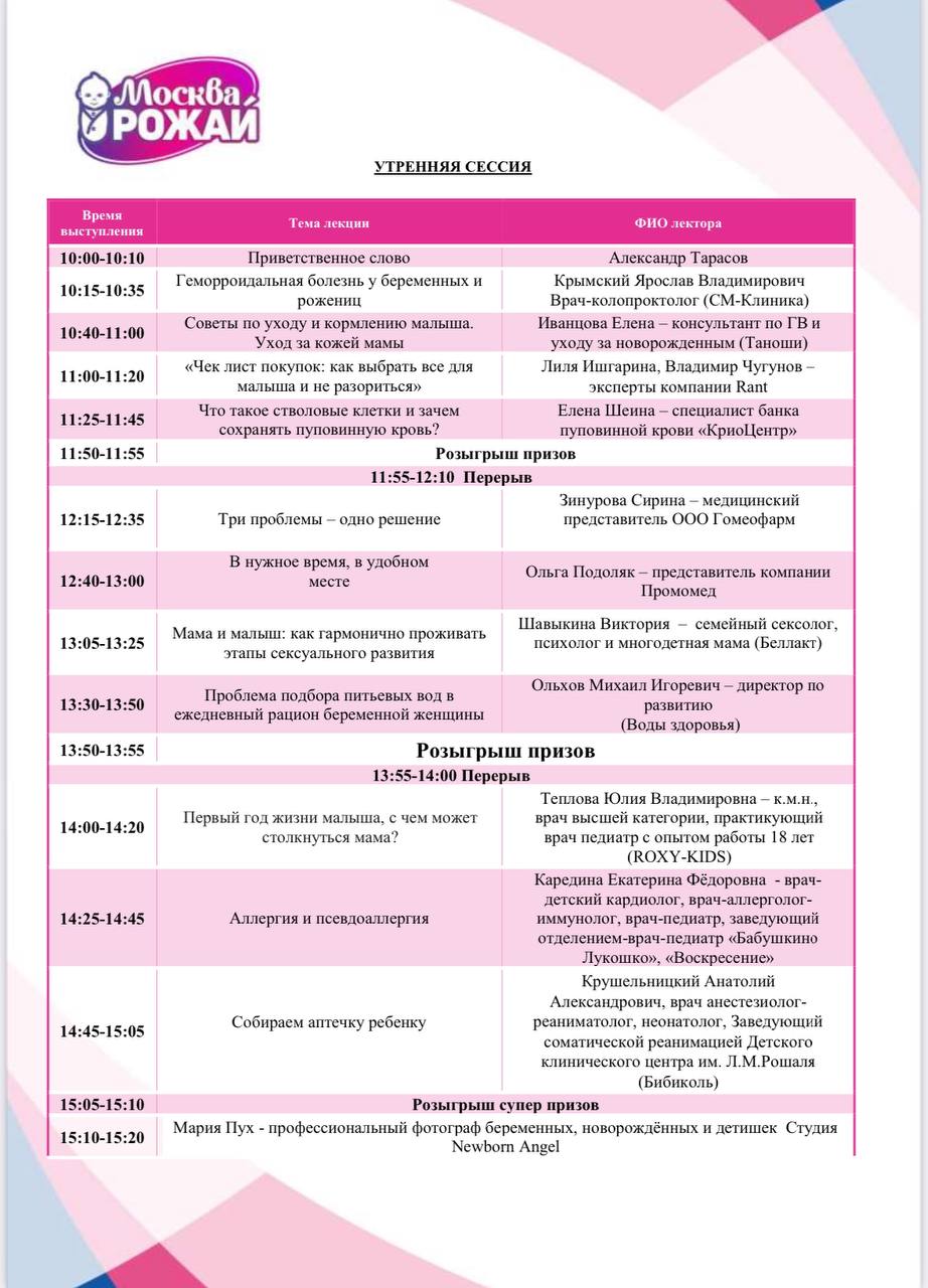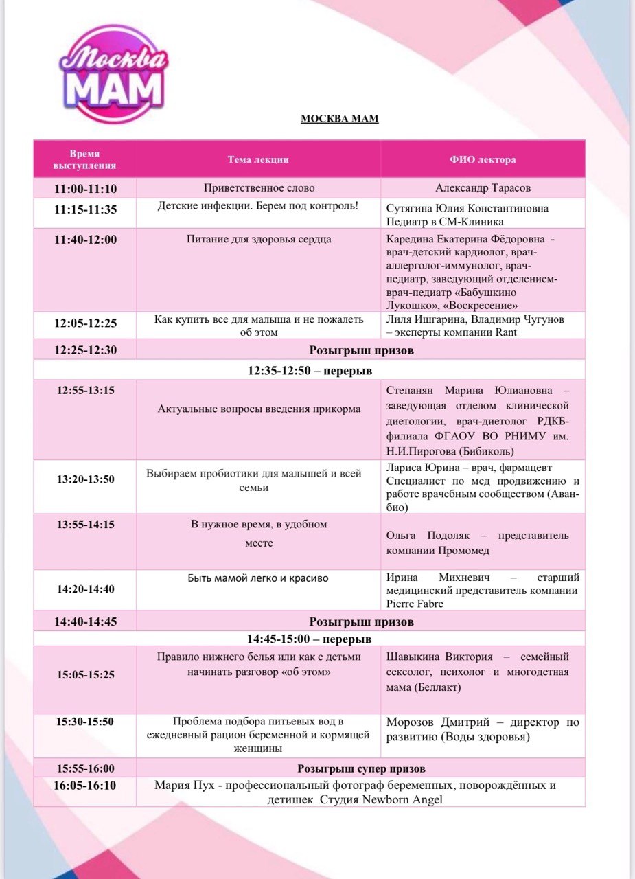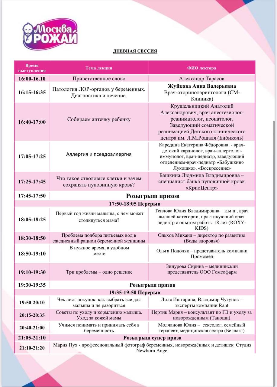 23 и 24 августа в пятизвёздочном отеле «Золотое кольцо» в центре Москвы состоялись встречи «Москва, Рожай» и «Москва Мам». | | | Девичники посетили 594 девушки | | | Мини-выставка товаров и услуг | В мероприятии принимали участие 17 крупных федеральных компаний России. Во время всего мероприятия работала выставочная зона, на которой можно было посмотреть и протестировать товары для мам и малышей и подробнее узнать о представляемых услугах. Партнеры мероприятия предоставили свою продукцию на стендах. | | | | Фотозона | На фоне пресс-вола гости делали памятные фото | | | | Костюмированное шоу участниц | Наши яркие участницы с большим воодушевлением поддержали тематику «Праздника с веерами». На площадке царила яркая атмосфера благодаря креативности и фантазии прекрасных мам! | | | | Подарочный пакет участницы | Все посетительницы мероприятия получали пакет участницы в конце лектория с продукцией от партнера | | | | Общий призовой фонд мероприятия | На праздничных девичниках был разыгран крупнейший призовой фонд, предоставленный многочисленными партнёрами Клуба беременных и молодых мам. Столы ломятся от подарков: очевидно, что с пустыми руками с мероприятия не уйдёт ни одна мама. | | | | | Подарочный стол Клуба беременных | | | | | Подарочный стол Клуба молодых мам | | | | Рады нашему сотрудничеству! | | | | Подписывайтесь на новости компании в телеграм канале | | | | Увидеть все наши проекты можно на сайте | | | Календарь активностей 2025 | | | На все вопросы готовы ответить наши представители: | | | |
