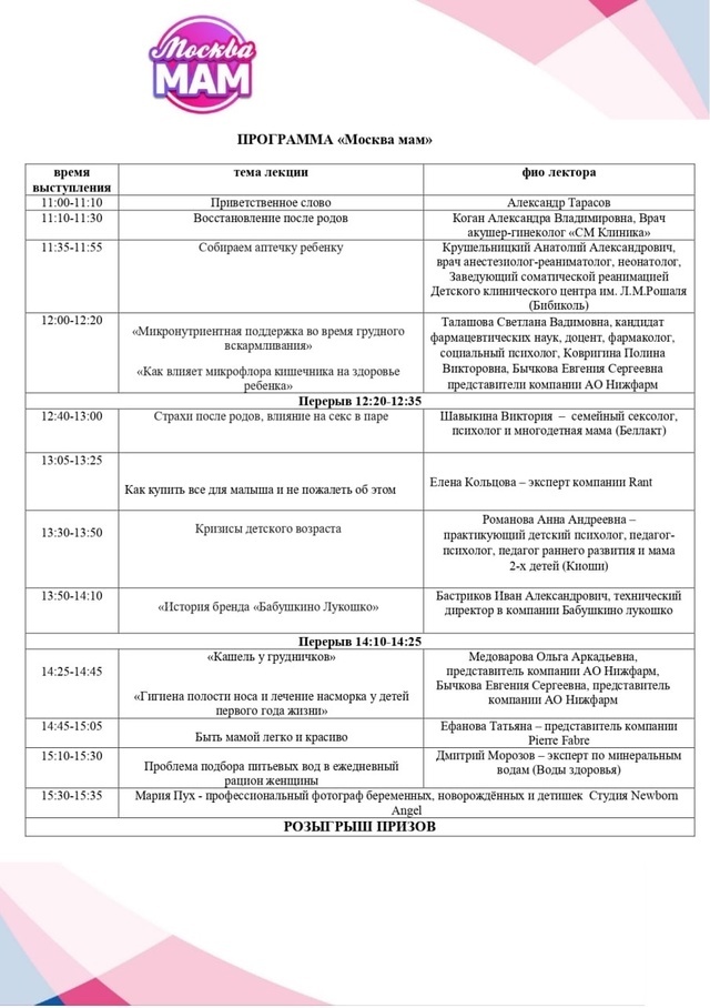 28 и 29 сентября в пятизвёздочном отеле «Золотое кольцо» в центре Москвы состоялись ежемесячные встречи «Москва, Рожай» и «Москва Мам». | | | Девичники посетили 786 девушек | | | Наше клубное движение не имеет аналогов ни в России, ни в мире. Клуб только для беременных, мероприятия ежемесячные, численность посещения 400- 500 беременных, соотношение онлайн и офлайн, активные чаты + преемственность клуба молодых мам! | | | | Мини-выставка товаров и услуг | Во время всего мероприятия работала выставочная зона, на которой можно было посмотреть и протестировать товары для мам и малышей и подробнее узнать о представляемых услугах. Партнеры мероприятия предоставили свою продукцию на стендах мероприятия. | | | | В мероприятии принимали участие 19 крупных федеральных компаний России. Генеральным партнером наших мероприятий выступает компания Ozon fresh. | | | | Фотозона | На фоне пресс-вола гости делали памятные фото | | | | Костюмированное шоу участниц | Участницы поразили нас своими яркими элегантными образами, нарядными вечерними платьями и готовностью полностью отдаться танцам, лекциям и общению друг с другом и с представителями наших соорганизаторов. | | | | | Будущие и настоящие мамы поучаствовали в поздравлении Клуба, озарив зал блеском своих образов! | | | | Шоу программа | Вместе с коллективом LUSH LIFE мы подарили мамам настоящий джаз – проникновенный, живой и эксцентричный, дающий возможность забыть обо всех проблемах и настраивающий на оптимистичный лад. | | | | Подарочный пакет участницы | Все посетительницы мероприятия получали пакет участницы в конце лектория с продукцией от партнера | | | | Общий призовой фонд мероприятия | На праздничных девичниках был разыгран крупнейший призовой фонд, предоставленный многочисленными партнёрами Клуба беременных и молодых мам. Столы ломятся от подарков: очевидно, что с пустыми руками с мероприятия не уйдёт ни одна мама. | | | | Работа со СМИ – одно из важнейших направлений нашей деятельности. Каждое наше мероприятие освещается профильными изданиями. | | | | Рады нашему сотрудничеству! | | | Подписывайтесь на новости компании в телеграм канале | | | Увидеть все наши проекты можно на сайте | | | Календарь активностей 2024 | | | Как проходят наши другие мероприятия вы можете посмотреть на нашем канале в Яндекс Дзен | | | На все вопросы готовы ответить наши представители: | | | |