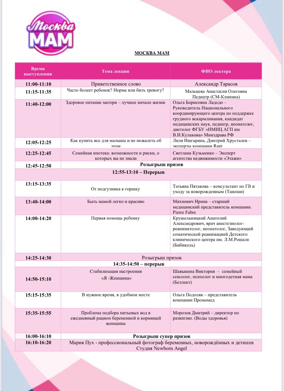 В мероприятии принимали участие 18 крупных федеральных компаний России. Во время всего мероприятия работала выставочная зона, на которой можно было посмотреть и протестировать товары для мам и малышей и подробнее узнать о представляемых услугах. Партнеры мероприятия предоставили свою продукцию на стендах.