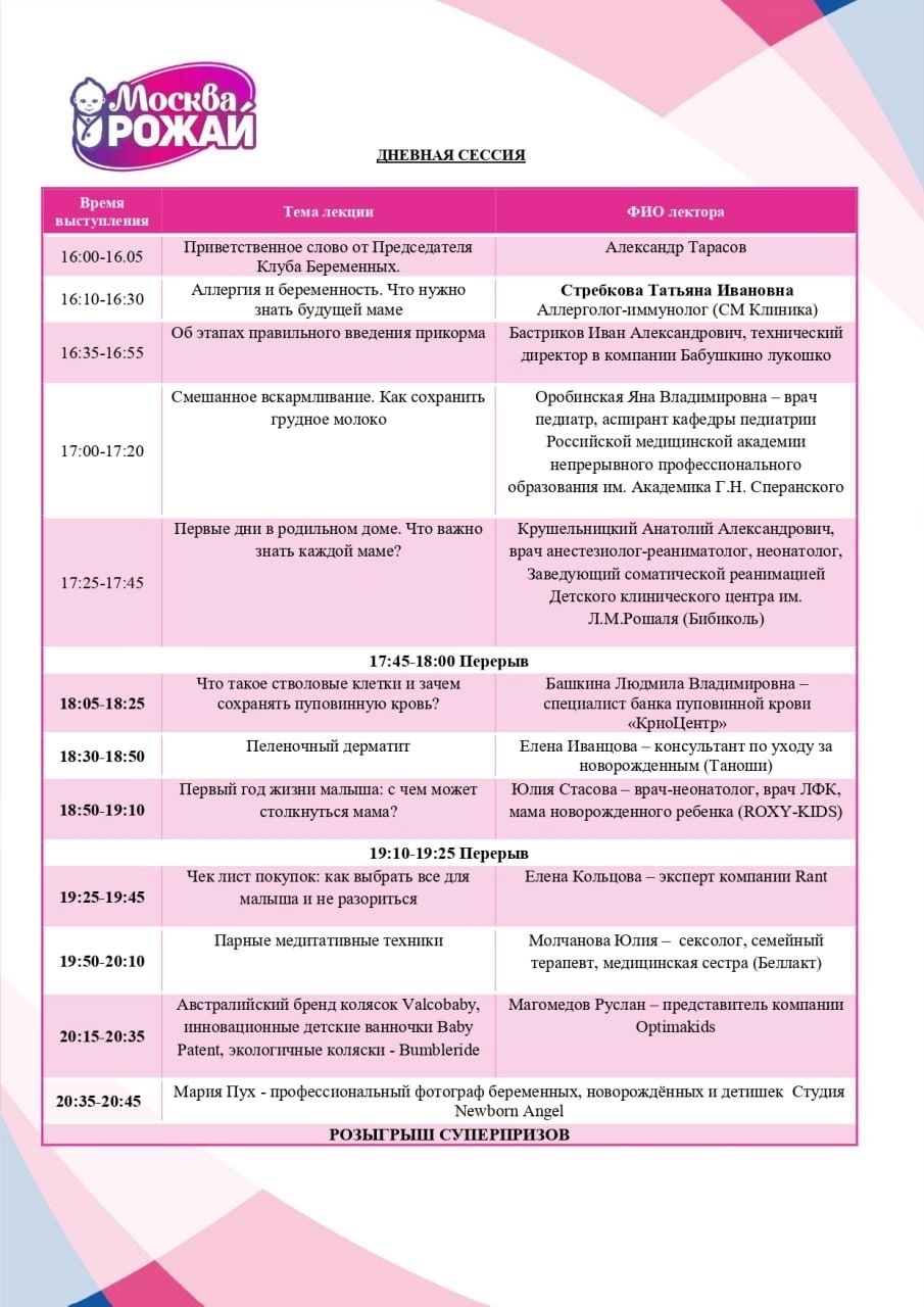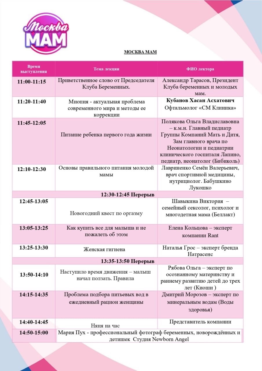 21 и 22 декабря в пятизвёздочном отеле «Золотое кольцо» в центре Москвы состоялись завершающие встречи этого года «Москва, Рожай» и «Москва Мам». | | | Девичники посетили 619 девушек | | | Вся команда Club Mama поздравляет вас с наступающими праздниками! | | | | Мини-выставка товаров и услуг | Во время всего мероприятия работала выставочная зона, на которой можно было посмотреть и протестировать товары для мам и малышей и подробнее узнать о представляемых услугах. Партнеры мероприятия предоставили свою продукцию на стендах мероприятия. | | | | В мероприятии принимали участие 18 крупных федеральных компаний России. Генеральным партнером наших мероприятий выступает компания Ozon fresh. | | | | Фотозона | На фоне пресс-вола гости делали памятные фото | | | | Костюмированное шоу участниц | Наши прекрасные участницы с большим воодушевлением участвовали в тематическом празднике, и на площадке у нас получилась настоящий Новогодний Диско-утренник! | | | | Шоу программа | На площадке царило настроение праздника, а атмосферу поддерживали приглашенный DJ и блистательный Хор мам, выступающий во время перерывов. | | | | Подарочный пакет участницы | Все посетительницы мероприятия получали пакет участницы в конце лектория с продукцией от партнера | | | | Общий призовой фонд мероприятия | На праздничных девичниках был разыгран крупнейший призовой фонд, предоставленный многочисленными партнёрами Клуба беременных и молодых мам. Столы ломятся от подарков: очевидно, что с пустыми руками с мероприятия не уйдёт ни одна мама. | | | | Рады нашему сотрудничеству! | | | | Подписывайтесь на новости компании в телеграм канале | | | | Увидеть все наши проекты можно на сайте | | | Календарь активностей 2025 | | | Как проходят наши другие мероприятия вы можете посмотреть на нашем канале в Яндекс Дзен | | | На все вопросы готовы ответить наши представители: | | | |