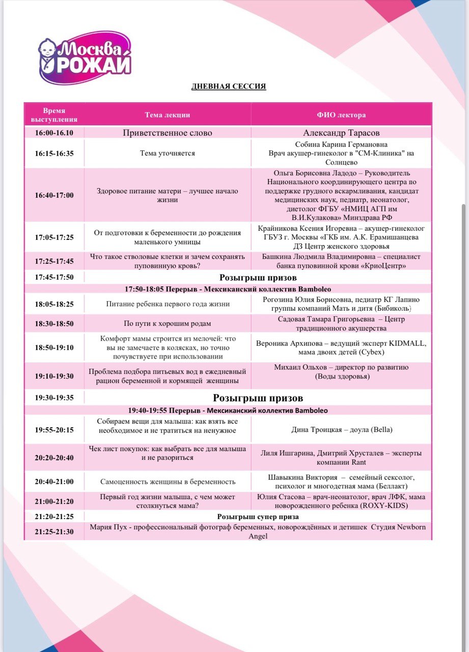 | 20 и 21 декабря в пятизвёздочном отеле «Золотое кольцо» в центре Москвы состоялись встречи «Москва, Рожай» и «Москва Мам». | | | | Девичники посетили 819 девушек | | | | Встречи беременных и молодых мам столицы, завершающие 2026 год, прошли с невероятным размахом, свойственным только нашему Клубу! | | | | | | Мини-выставка товаров и услуг | | В мероприятии принимали участие 19 крупных федеральных компаний России. Во время всего мероприятия работала выставочная зона, на которой можно было посмотреть и протестировать товары для мам и малышей и подробнее узнать о представляемых услугах. Партнеры мероприятия предоставили свою продукцию на стендах. | | | | | | Фотозона | | На фоне пресс-вола гости делали памятные фото | | | | | | Костюмированное шоу участниц | | Наши яркие участницы с большим воодушевлением поддержали тематику предновогодней Латиноамериканской вечеринки! На площадке царила атмосфера блистательного праздника благодаря креативности и фантазии прекрасных мам! | | | | | | Шоу программа | | Зажигательную атмосферу праздника поддерживали приглашенный коллектив «Mariachi Bamboleo Latino», а также чудесный Хор мам! | | | | | | Подарочный пакет участницы | | Все посетительницы мероприятия получали пакет участницы в конце лектория с продукцией от партнера. | | | | | | Общий призовой фонд мероприятия | | На праздничных девичниках был разыгран крупнейший призовой фонд, предоставленный многочисленными партнёрами Клуба беременных и молодых мам. Столы ломятся от подарков: очевидно, что с пустыми руками с мероприятия не уйдёт ни одна мама. | | | | | | | Подарочный стол Клуба беременных | | | | | | Подарочный стол Клуба молодых мам | | | | Рады нашему сотрудничеству! | | | | | Подписывайтесь на новости компании в телеграм канале | | | | Увидеть все наши проекты можно на сайте | | | | Календарь активностей 2026 | | | На все вопросы готовы ответить наши представители: | | | |