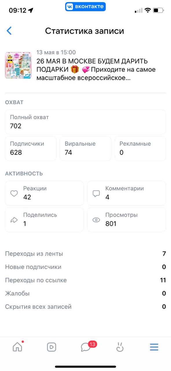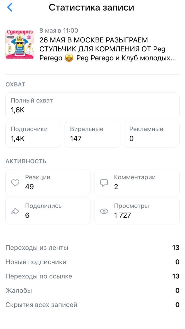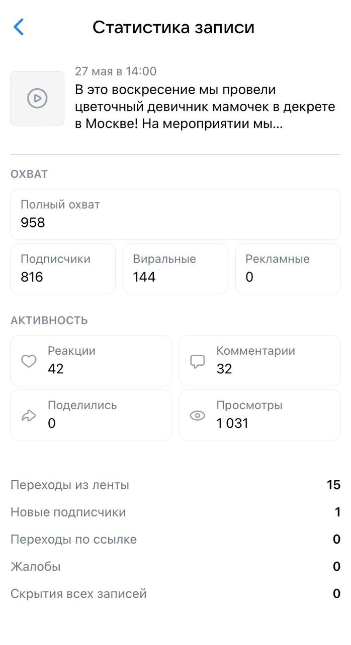 Публикация постов ВКонтакте в группе Клуб молодых мам с полным суммарным охватом в 4 015:
