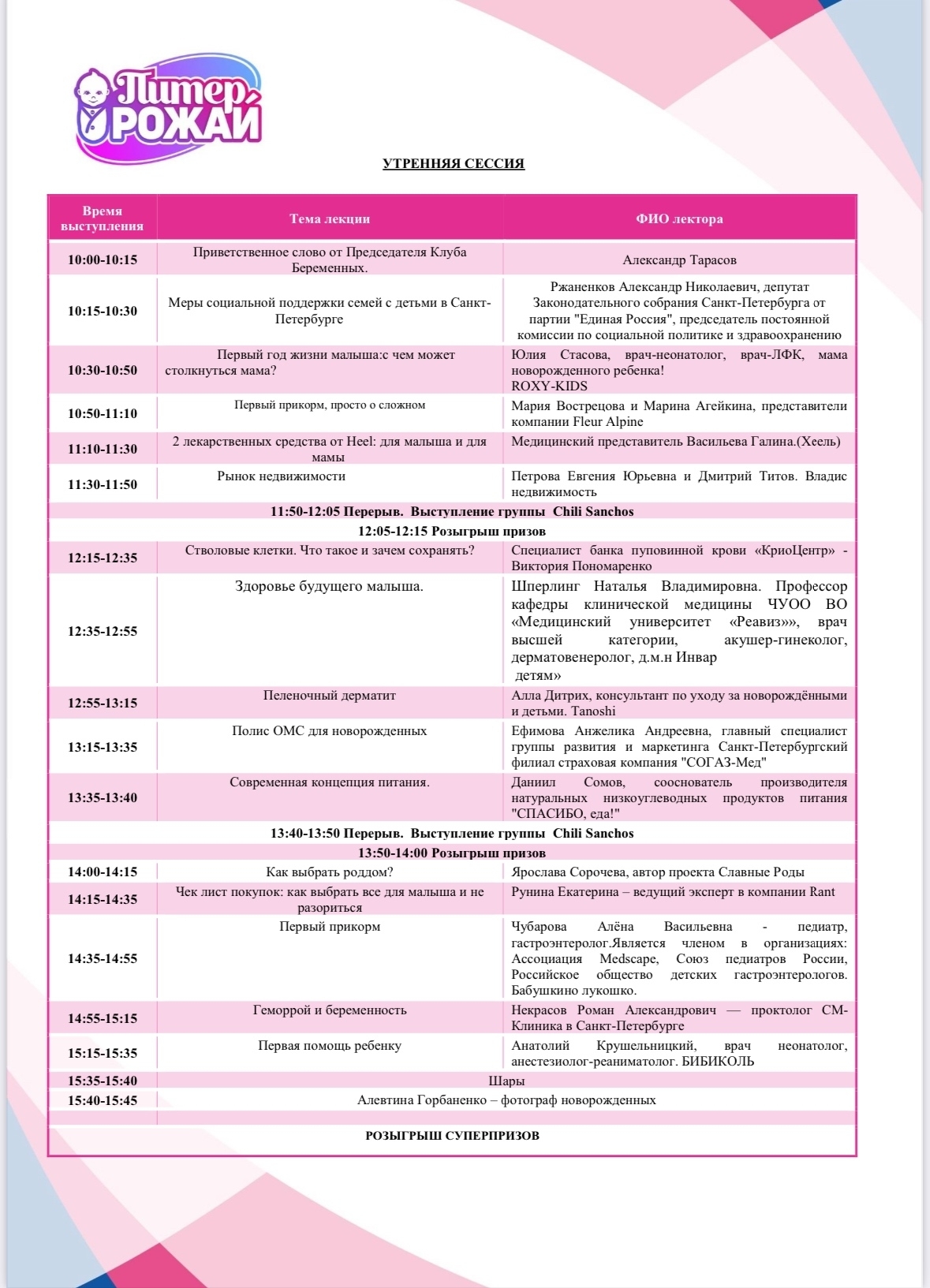 | 13 и 14 декабря в гостинице «Октябрьская» в центре Санкт-Петербурга состоялись встречи «Питер, Рожай» и «Питер мам». | | | | Девичники посетили 482 девушки | | | | На прошлых выходных невероятно ярко и грандиозно клуб беременных и мам Санкт- Петербурга достойно проводил 2025 год! Нас было много, нам было весело! | | | | | | Мини-выставка товаров и услуг | | В мероприятиях принимали участие 16 крупных федеральных компаний России. Во время всего мероприятия работала выставочная зона, на которой можно было посмотреть и протестировать товары для самых маленьких и подробнее узнать о представляемых услугах. Партнеры мероприятия предоставили свою продукцию на стендах мероприятия. | | | | | | Поддержка власти | | С напутственным словом и поздравлениями на мероприятии выступил председатель постоянной комиссии по здравоохранению и социальной политике законодательного собрания Санкт-Петербурга Александр Николаевич Ржаненков. Он рассказал о мерах поддержки молодых семей, которые предоставляют городские власти. | | | | | | Фотозона | | На фоне пресс-вола гости делали памятные фото | | | | | | Костюмированное шоу участниц | | Наши прекрасные участницы с большим воодушевлением участвовали в тематической предновогодей Латиноамериканской вечеринке! | | | | | | Шоу программа | | Зажигательную атмосферу праздника поддерживали невероятные ребята из кавер-группы "Chili Sanchos". | | | | | | Подарочный пакет участницы | | Все посетительницы мероприятия получали пакет участницы в конце лектория с продукцией от партнеров. | | | | | | Общий призовой фонд мероприятия | | На праздничных девичниках был разыгран крупнейший призовой фонд, предоставленный многочисленными партнёрами Клуба беременных и молодых мам. Без индивидуального подарка встречу не покинула ни одна участница. | | | | | | | Подарочный стол Клуба беременных | | | | | | Подарочный стол Клуба молодых мам | | | | Рады нашему сотрудничеству! | | | | | | | Увидеть все наши проекты можно на сайте | | | | | | Отчёты обо всех проектах нашего агентства на нашей платформе в Дзен | | | | | | Все новости о нашей компании и аналитические материалы о рынке детского ритейла | | | | | Календарь активностей 2026 | | | На все вопросы готовы ответить наши представители: | | | |